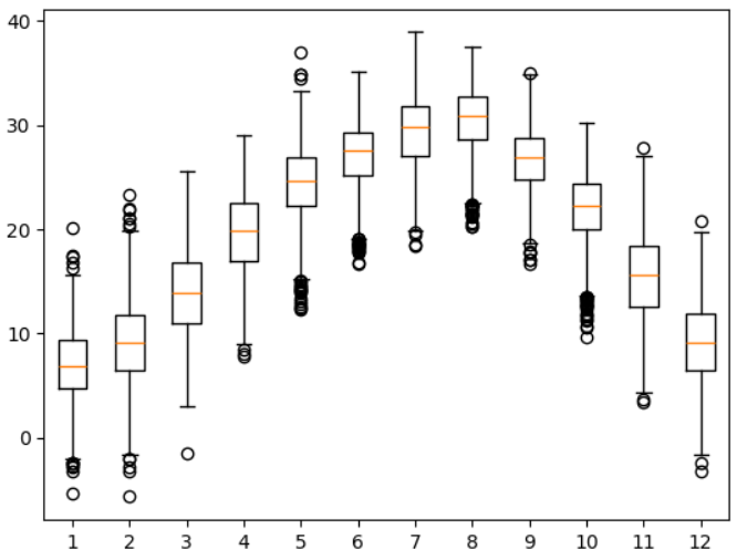 기온 데이터를 상자 그림으로 표현하기
