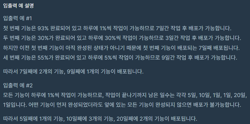 코딩테스트 연습 - 기능개발 | 프로그래머스 스쿨 (programmers.co.kr)