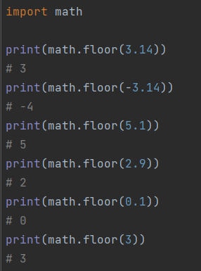 실수를 입력하면 내림하여 정수를 반환하는 함수.