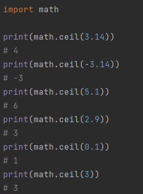 실수를 입력하면 올림하여 정수로 반환하는 함수.