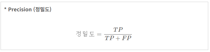Precision이란 모델이 Positive라 분류한 것 중 실제값이 Positive인 비율을 말한다.