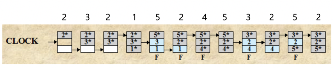 - 페이지를 적재한 프레임들이 환형으로 배치되어 있다고 간주하고, 첫 교체후보를 가리키는 포인터를 설정