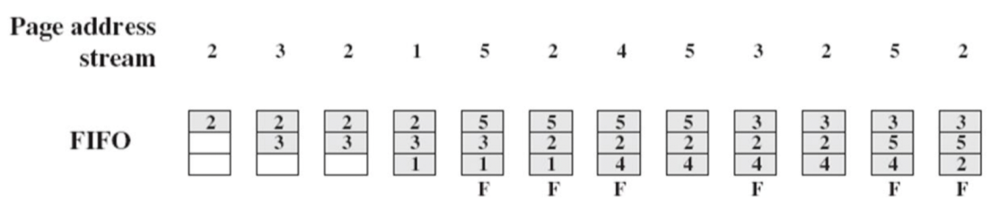 · 가장 오래 전에 물리 메모리로 반입된 페이지를 교체함